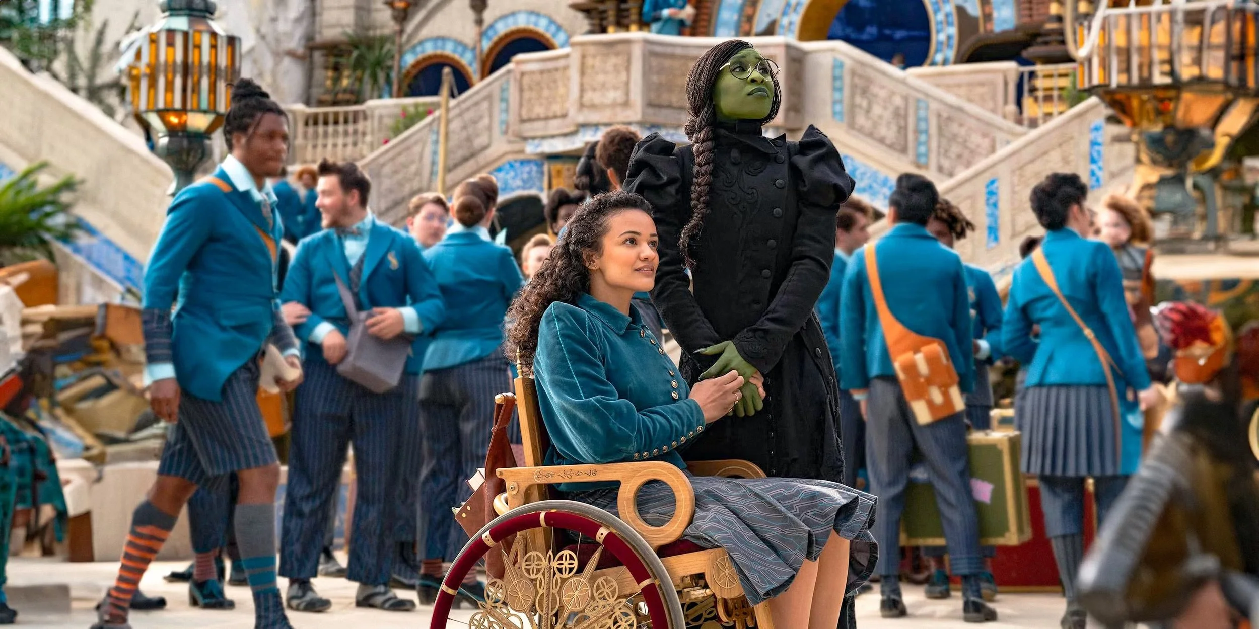 In one scene from Wicked (2024), we meet the condescending Miss Coddle, who refuses to let Nessa do anything for herself. She wheels her around without asking for permission and, most noticeably, refers to her as “tragically beautiful” with a glance at her wheelchair. This isn’t the only time Nessa’s beauty is reduced to her disability. When the school dance comes around, Nessa is used as a pity case for popular witch Glinda to get her dream date (“see that tragically beautiful girl/the one in the chair/it seems so unfair”). As a result, Nessa is showcased as plain and uninteresting because her beauty is marred by this dastardly adverb: “tragically”.