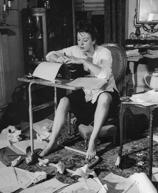 Burlesque Star, Gypsy Rose Lee, writing her first book, The G-String Murders, in 1941. Credit: Books for Victory.