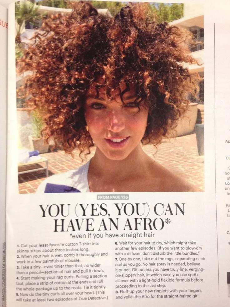 In my eyes, these tiny omissions pile onto a mountain of hypocrisy. From taking credit for others’ achievements to forcing black hairstyles onto white heads (no, Allure, forcing an afro on straight hair isn’t 2015 “chic”), the lack of respect and knowledge about black hair feeds a vicious cycle.